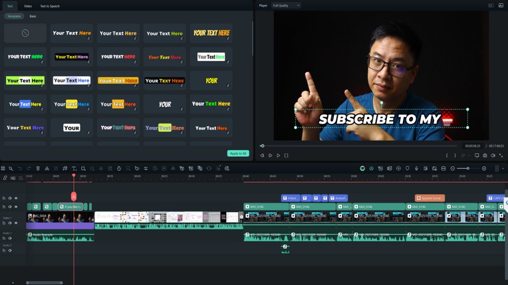 | Tính năng AI “Đỉnh” | Mẫu phụ đề động | Text-Based Editing | AI Audio Cleanup | Text-to-Speech (TTS) |