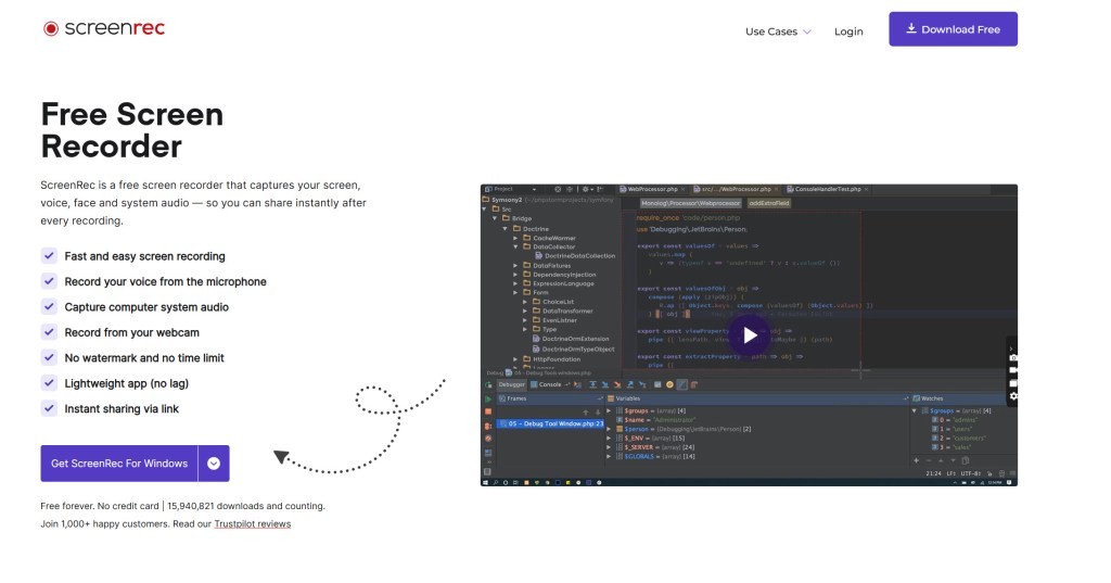 Screenrec tự định vị mình là một công cụ năng suất được thiết kế cho giao tiếp trong kinh doanh hơn là sáng tạo nội dung chuyên sâu . Nó là một công cụ quay màn hình và chụp ảnh màn hình dựa trên đám mây (cloud-based), có sẵn cho Windows, Mac và Linux .